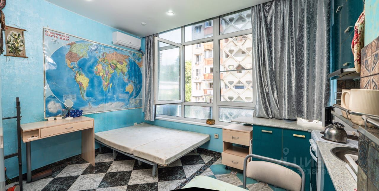 О квартире: расположена на 6 этаже, площадь 23 кв. м; с/у совмещенный, в плитке; есть водонагреватель (всегда в наличии горячая вода), кондиционер. Потолки 2.75м, пол - плитка. Мебель оставим по договоренности (кроме холодильника, стиральной машинки). Квартира в хорошем жилом состоянии, можно заселиться без дополнительных вложений. Важный бонус - имеется второй уровень, комната без ремонта. Подходит для спальни или кладовки.