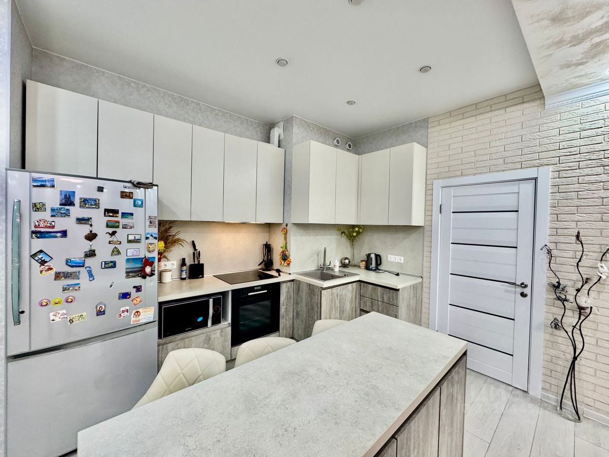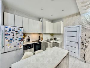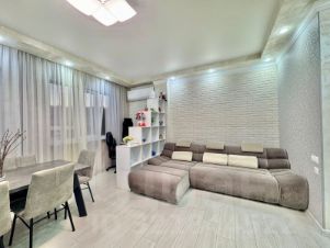Продается просторная двухкомнатная квартира в Сочи на Пригородной улице, 17. Общая площадь — 86 кв. м, жилая — 40 кв. м, кухня — 25 кв. м. Расположена на 5 этаже 7-этажного монолитного дома, построенного в 2017 году. Высокие потолки (3 м) и окна, выходящие во двор, создают ощущение простора и уюта. В квартире выполнен качественный евроремонт.