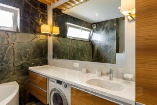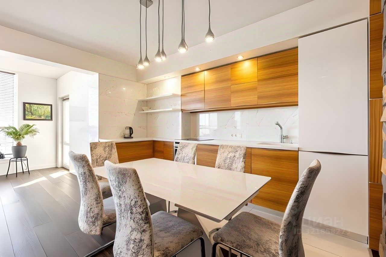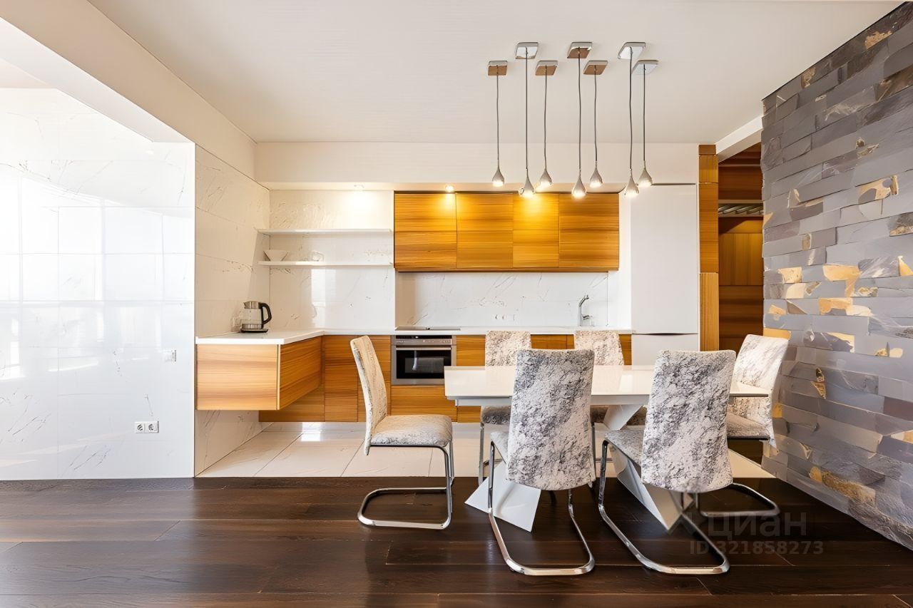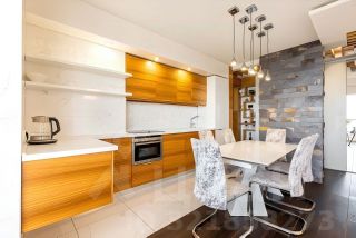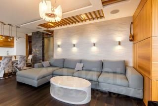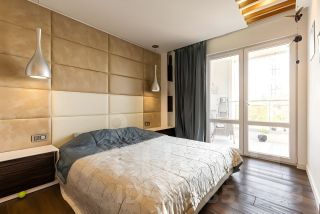Планировка: кухня-гостиная, две спальни, два санузла, гардеробная, панорамная лоджия. Интерьер выполнен в современном стиле с дорогим ремонтом из премиальных материалов.