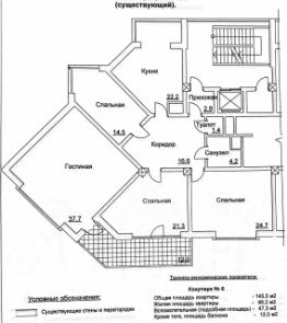 4-х комнатная квартира в центральном районе гор.Сочи. Площадь 145,5 м2 плюс оборудованный балкон площадью 12 м2. В квартире три раздельные спальни общей площадью 60,5 м2, гостиная площадью 37,7 м2, кухня-столовая 22 м2, два санузла и прихожая 16,6 м2