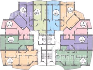 Это двухкомнатная квартира площадью 100 кв. м с жилой площадью 65 кв. м и кухней 30 кв. м.