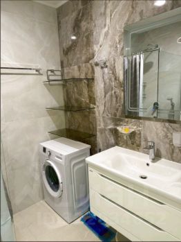 Квартира выполнена в дизайнерском стиле, поэтому готова к заселению без дополнительных вложений. Совмещенный санузел оборудован современной сантехникой. В квартире есть лоджия, где можно организовать уютное место для отдыха. Благодаря продуманной планировке, в квартире легко размещаются все необходимые предметы мебели и техники.