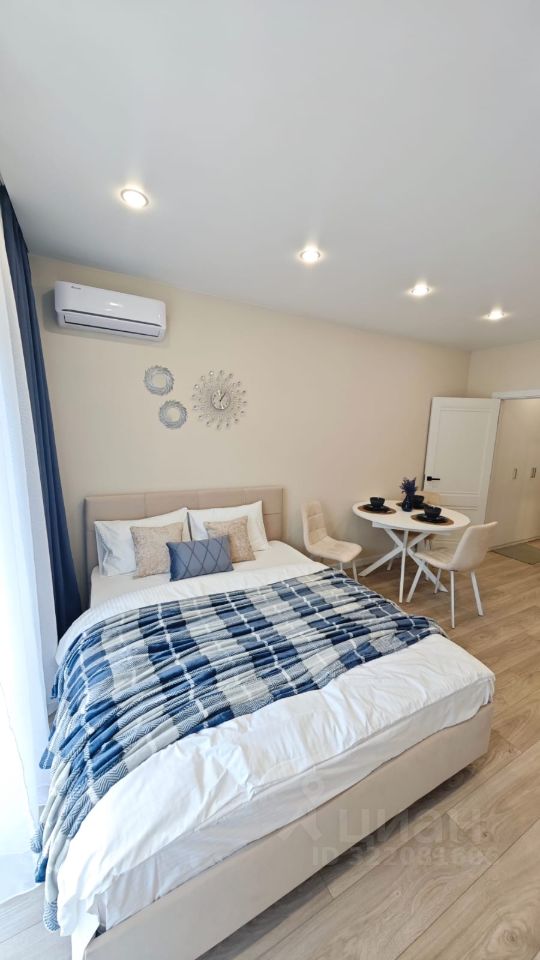 В апартаментах выполнен качественный евроремонт, что позволяет сразу же заселиться без лишних хлопот. Комната обставлена стильной и удобной мебелью, все продумано до мелочей для вашего комфорта. Встроенная техника современная и надежная. Санузел совмещенный, с новой сантехникой, все сделано с заботой о вашем удобстве. У апартаментов есть уютный балкон, где можно насладиться видом на город.