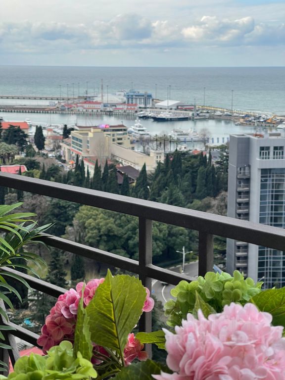 С балконом, с которого открывается прямой панорамный вид на море, морской порт и центр города Сочи!