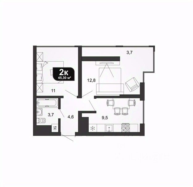 Общая площадь45,3 м²