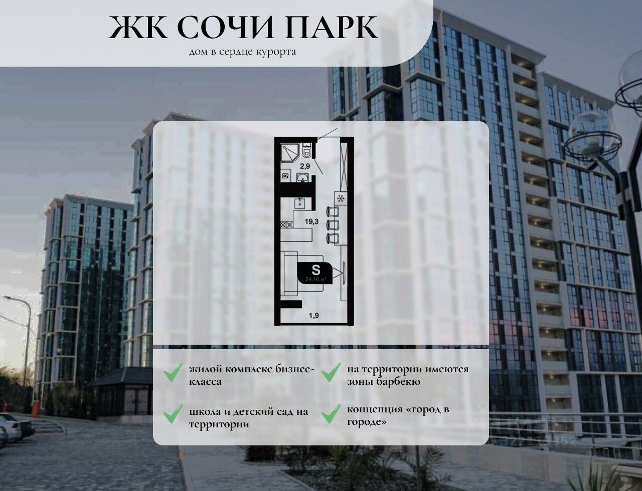 Проект включает в себя 9 домов бизнес-класса. Дома возводятся по долговечной монолитной технологии. Фасады облицованы вентилируемыми фасадами. Покупателям в ЖК предложено множество планировочных решений: в наличии квартиры, как классического типа, так и европланировки. Квартиры сдаются с подчистовой отделкой и высотой потолков 2,85 метров. На территории комплекса предусмотрена школа на 1100 мест. На первых этажах находятся коммерческие помещения. Для автовладельцев предусмотрены парковки. Территория комплекса благоустроена, Жилой комплекс расположен в микрорайоне Бытха города Сочи. Инфраструктура района развита: в пешей доступности детские сады, школы, аптеки и поликлиники, магазины и парки.