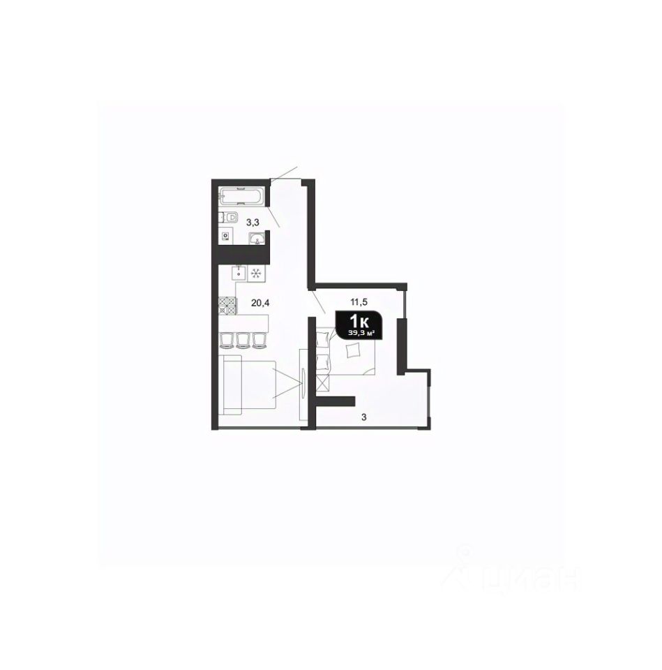 Общая площадь39,3 м²