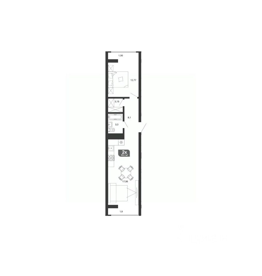 Общая площадь49,1 м²