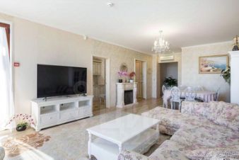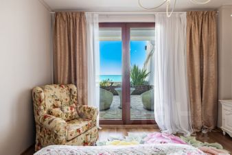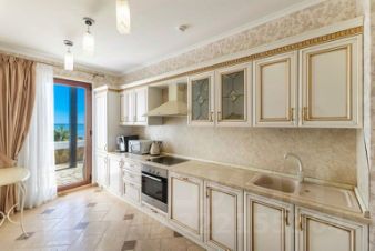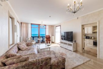 Идеальная планировка и премиальный ремонт. Апартамент распланирован в 2 спальни, каждая с собственным санузлом и выходом на большую террасу с завораживающим морским видом. Отдельная кухня и просторная гостиная с панорамным остеклением создают комфортное жилое пространство. В квартире выполнен дизайнерский ремонт класса Deluxe с использованием материалов высокого класса. Встроенная техника немецких брендов, вся мебель — производства Италии, всё полностью остаётся покупателю.