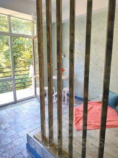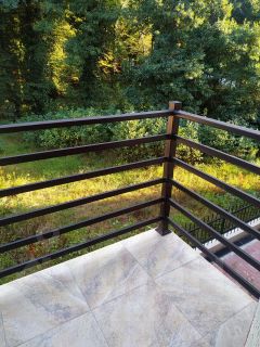 Большой балкон выходит на лес.