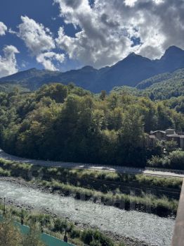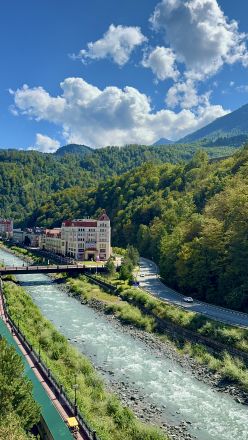 Панорамные окна с умопомрачительным видом на горы и реку Мзымта, просторный балкон приглашает встречать рассветы в условиях первозданной природы.