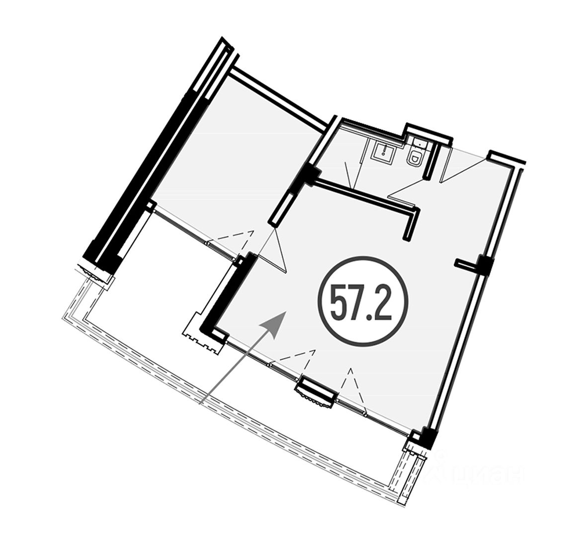 Общая площадь57,2 м²