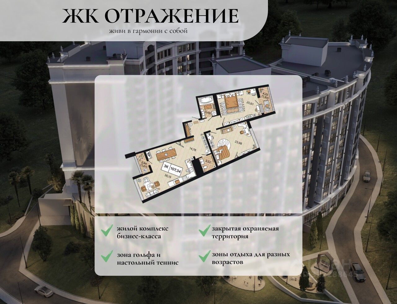 ЖК Отражение - это настоящий бизнес-класс в самом сердце города. Идеальный баланс трех ценностей: комфорта, безопасности и качества для гармоничной и спокойной жизни. Самое важное в шаговой доступности - поликлиники, сад, школа, кинотеатр, православный храм, огромное количество магазинов и аптек, отделение банка, салоны красоты, почта. Объект расположен внутри сложившегося микрорайона со всем необходимым. Донская респектабельный район, который сегодня переживает новый расцвет и обновляется. Насыщенная инфраструктура района становится только лучше и разнообразнее. Не вы подстраиваетесь под структуру, а она под вас - здесь времени хватит на все. С помощью развитой внутренней инфраструктуры создаётся пространство больших возможностей, самые необходимые товары и услуги - на расстоянии минутной поездки на лифте. В домах предусмотрена подземная парковка и зарядная станция для электрокаров. Закрытая охраняемая территория; вход в подъезд по Face-id; зона для работы и переговоров; зал для йоги и фитнеса; зона гольфа и настольный теннис; шахматный стол и мини-хоккей; амфитеатр, который в вечернее время будет функционировать как кинотеатр на свежем воздухе; территория с зонами для отдыха и детской игровой площадкой.