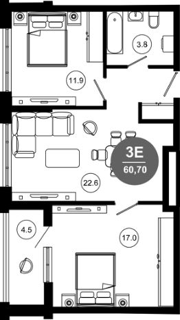 Общая площадь60,7 м²