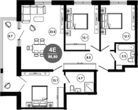 Общая площадь86,8 м²