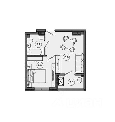 Общая площадь33,1 м²