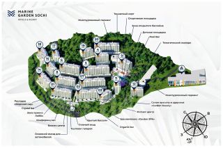 "Marine Garden Sochi" Hotels & Resort - крупнейший курортный комплекс, расположенный между живописным зеленым массивом и панорамным морским простором района Хоста города Сочи в уединённой парковой зоне площадью 8 га с собственной культурной и развлекательной инфраструктурой.