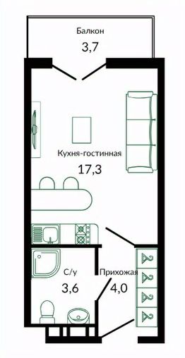 Общая площадь25,7 м²