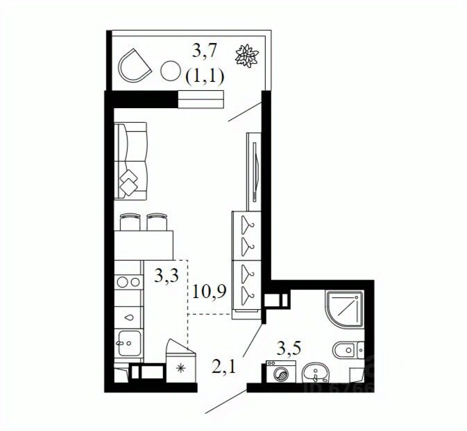 Общая площадь20,9 м²