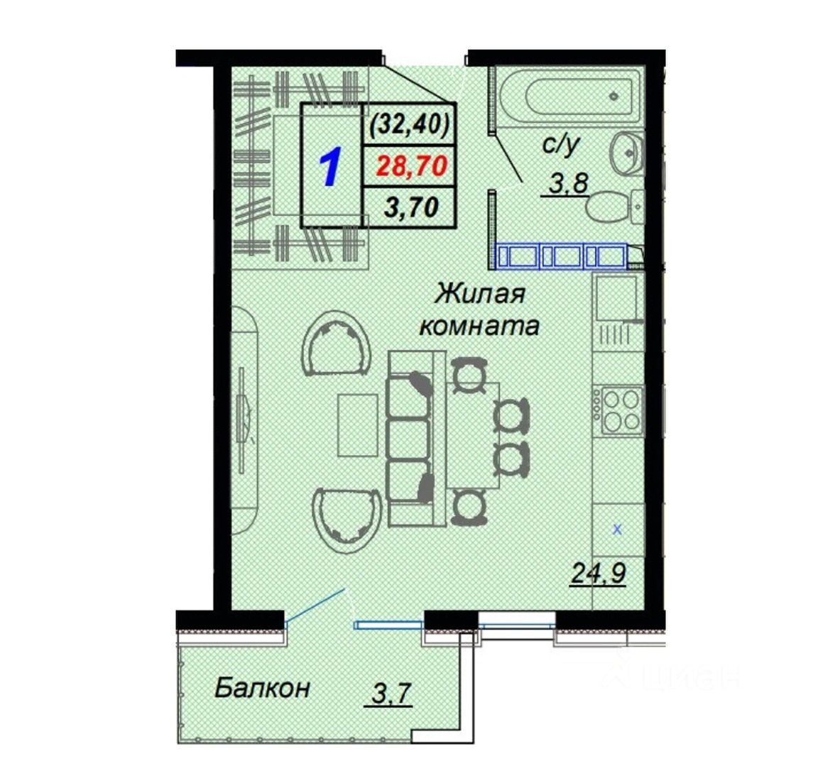 Общая площадь32,4 м²