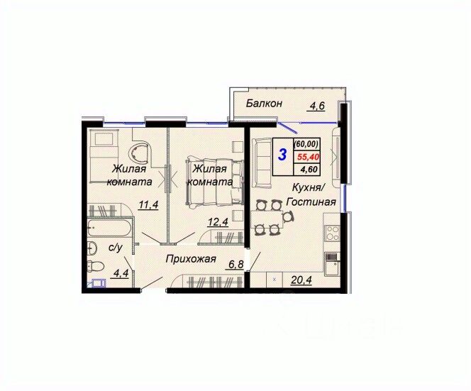 Общая площадь60 м²