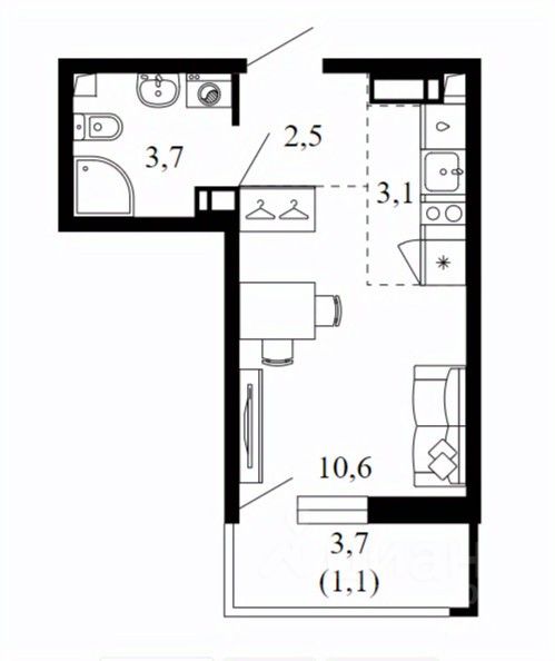 Общая площадь21 м²