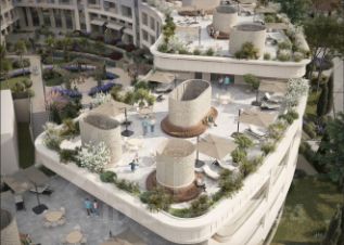 Каскадное здание в средиземноморском стиле. Использованы исключительно качественные материалы -натуральный травертин, дизайн выполнен в спокойных пастельных тонах.