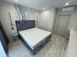 Верхний уровень отведен под приватную спальную зону. Здесь царит атмосфера безмятежности, созданная за счет пастельной цветовой палитры, мягкого текстиля и приглушенного освещения. Это идеальное место для отдыха и восстановления сил.