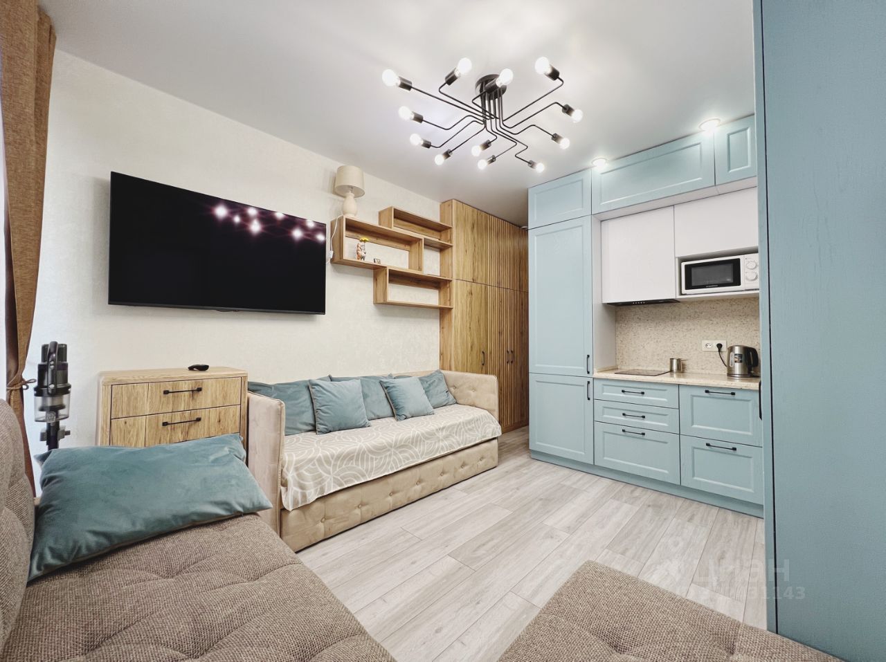 В квартире сделан качественный евроремонт, который не требует дополнительных вложений. Она полностью готова для проживания. Совмещенный санузел выполнен в современном стиле. Пространство студии спланировано так, чтобы максимально использовать каждый метр — здесь достаточно места для зоны отдыха и кухни. Есть балкон, где можно наслаждаться утренним кофе или вечерним закатом.