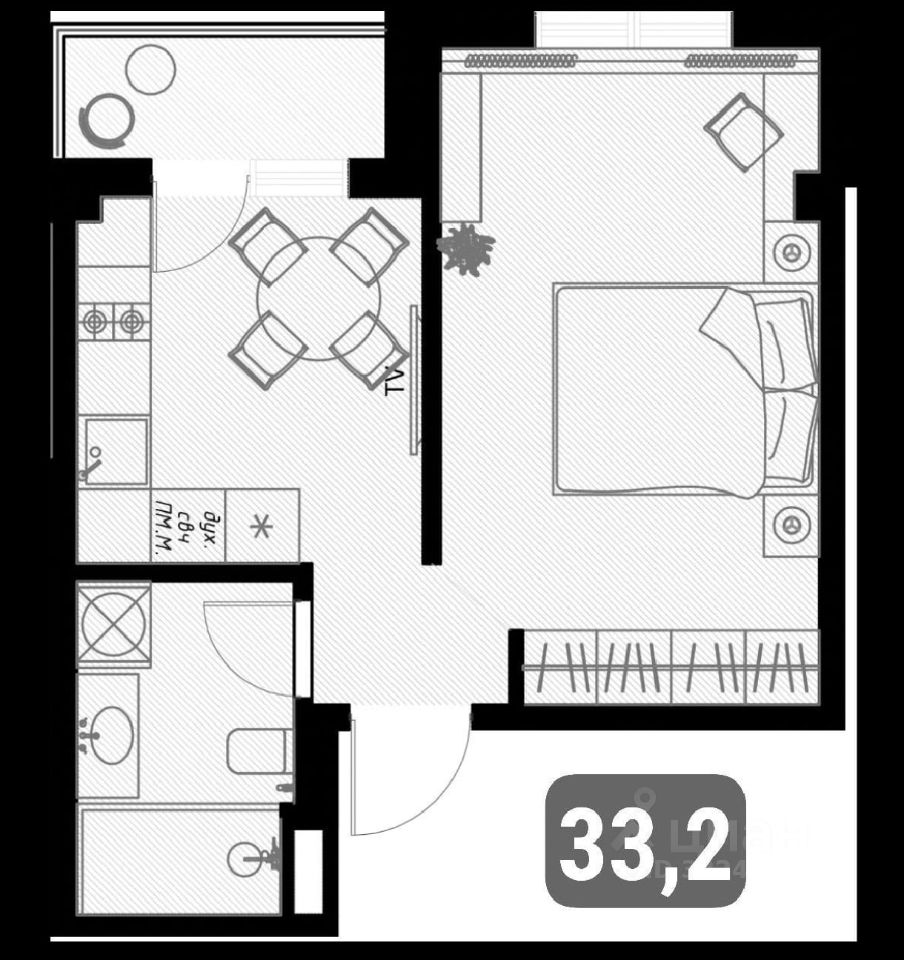 - *Цена:* 12 300 000 ₽ (всего 373 тыс. руб./м², у застройщика 550 тыс. руб./м²).