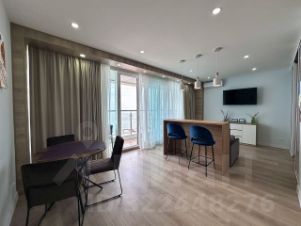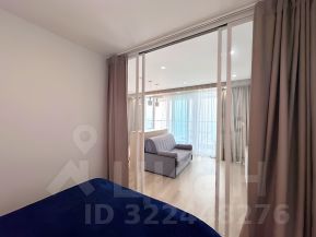 Планировка включает спальню и просторную кухнюгостиную. Выполнен качественный евроремонт из современных материалов, установлена мебель и техника — всё остаётся новому собственнику.