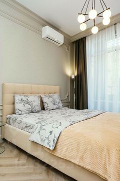 - Просторная планировка: удобное зонирование на спальню и кухню-гостиную.