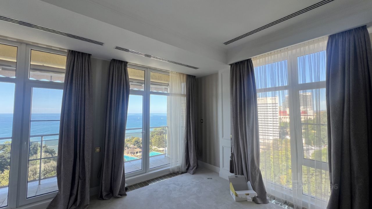 Коллекционная и уникальная недвижимость - второй такой нет. Более 8 комнат и все с балконами и прямым видом на море, парк - есть маркизы, спасающие от прямых солнечных лучей. Квартира с ремонтом, который требует переделки на несколько долей/помещений с отдельными входами, сан.узлами и кухонными зонами.