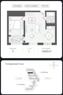 49,5 кв.м (2 комнаты) для семейного отдыха