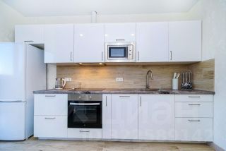 - Светлая кухня-гостиная с барной стойкой и современной техникой