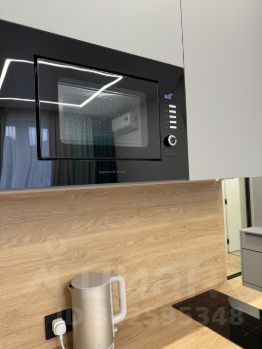 Кухня оснащена варочной панелью, вытяжкой, большим холодильником, микроволновой печью, чайником.