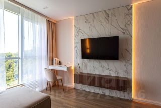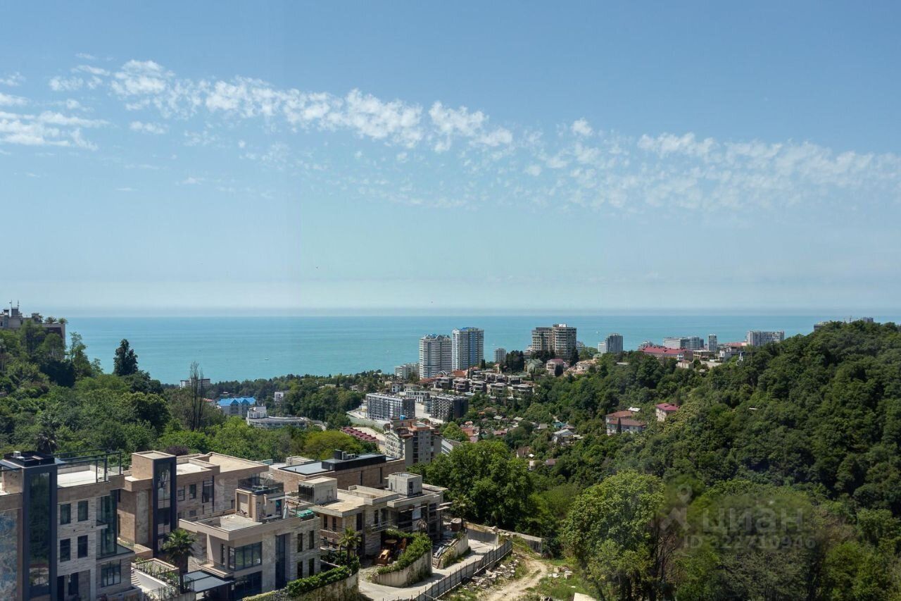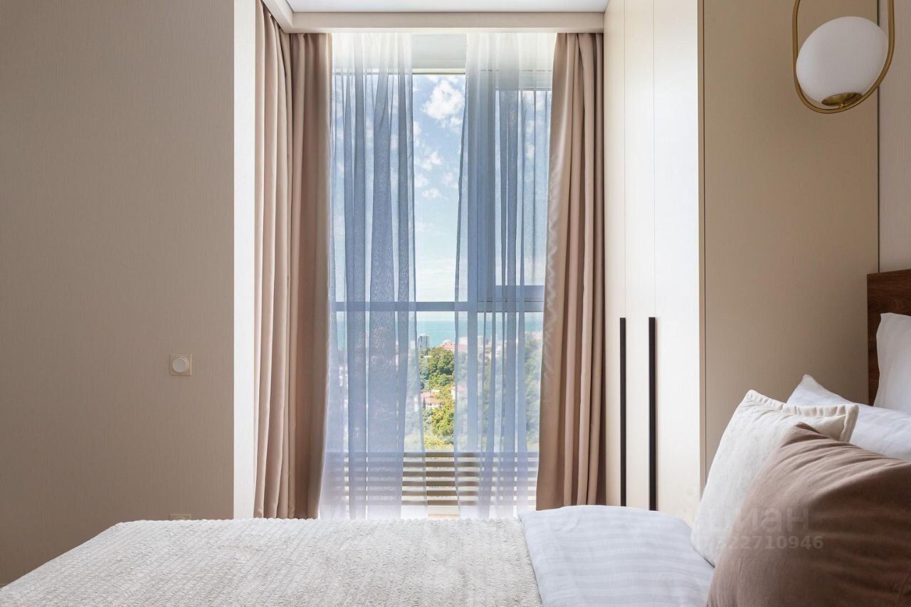 Особое внимание заслуживает панорамный вид на море, открывающийся из окон квартиры. Интерьер выполнен качественно и продуманно, создавая атмосферу комфорта и уюта. Территория комплекса охраняется, обеспечивая безопасность жильцов. Удобное расположение позволяет добраться до центра Сочи всего за 10 минут на машине.