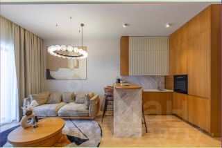 Предлагаю современную квартиру с дизайнерским ремонтом, мебелью и техникой ведущих мировых брендов. Планировка включает отдельную спальню и просторную кухню-гостиную. Есть открытый балкон с захватывающим видом на море.