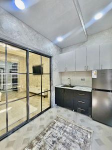 Продаются апартаменты площадью 27 кв. м. Высокие потолки — 3 метра — создают ощущение простора. Дом оснащен пассажирским лифтом и пандусом, что делает его удобным для всех жителей.
