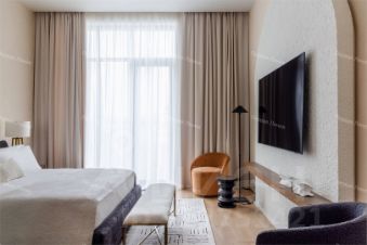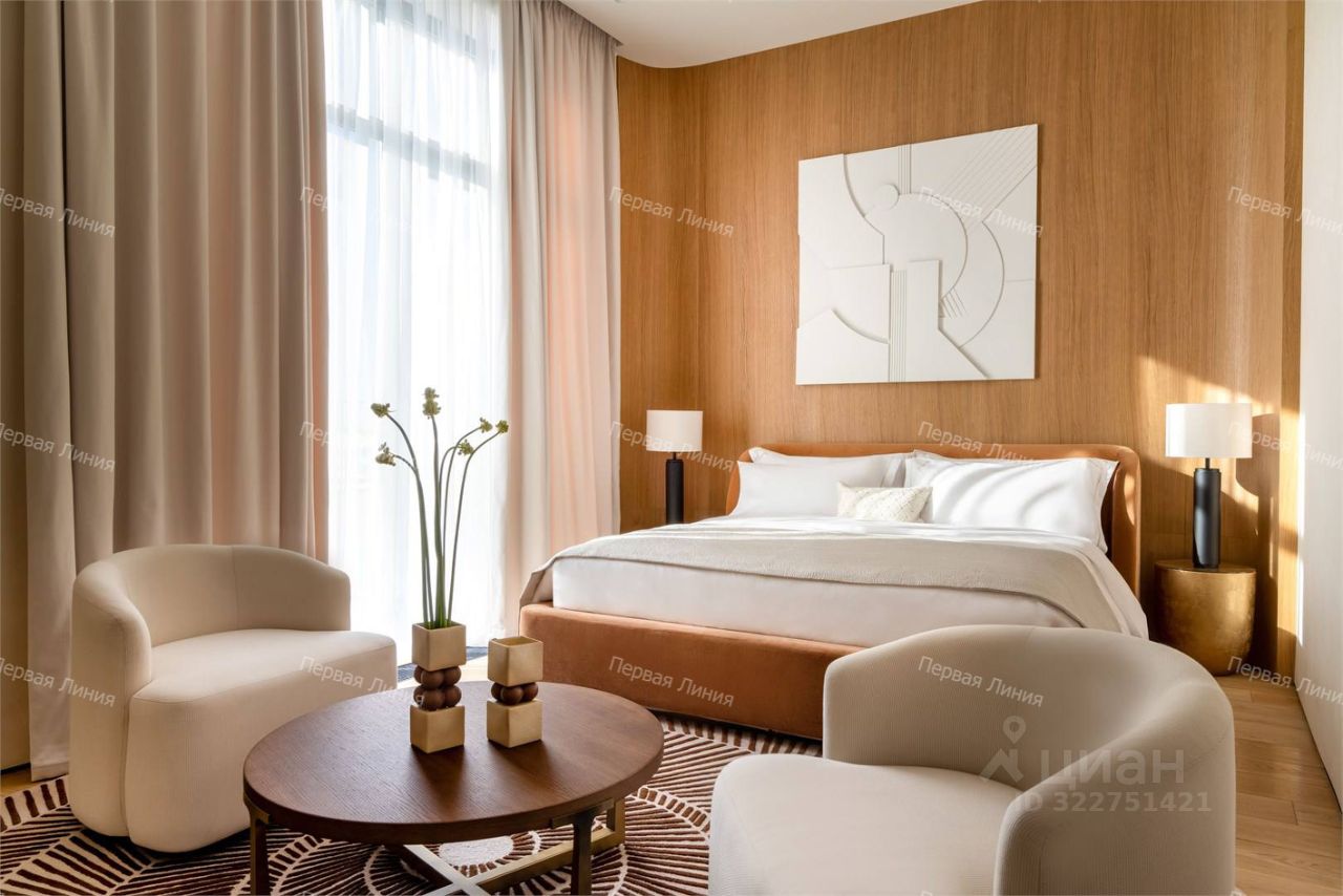 Интерьер выдержан в элегантном минимализме — каждый элемент продуман до мелочей, чтобы создать атмосферу спокойствия, уюта и роскоши.