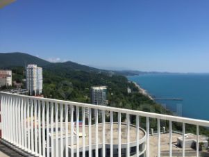 Общая площадь квартиры 175 квадратных метров. Внутри выделено две изолированных спальни и два санузла. Гостиная комната совмещена вместе с кухней. Есть собственная терраса с шикарным видом на морскую панораму и территорию самого жилого комплекса, которая превращена в один большой парк.