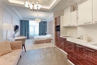 Апартаменты общей площадью 34.2 м² расположены на третьем этаже. Дом клубного типа с небольшим количеством проживающим. За счет этого, всегда есть полная загрузка номеров.