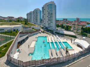 Из окон квартиры и с территории комплекса открываются прекрасные виды на море и горы. Идеальный вариант для тех, кто ищет уютное и функциональное жилье вблизи побережья.