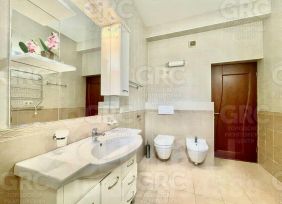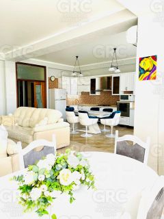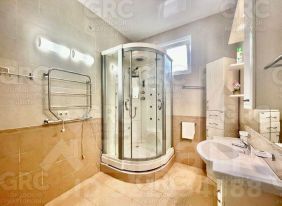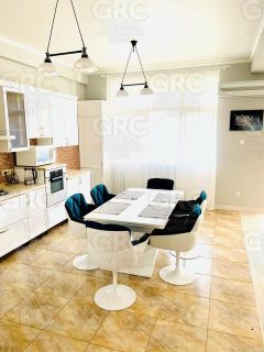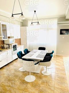 Широкий коридор, две спальни (25,9 и 21,6 м2) большая кухня- гостиная 64,5 м2, открытый просторный балкон, два сан.узла, в большом сан.узле душевая кабина. Высокие потолки, тёплый пол на кухне, коридоре, в сан.узлах. Индивидуальное газовое топление.
