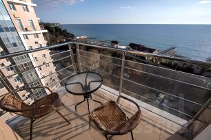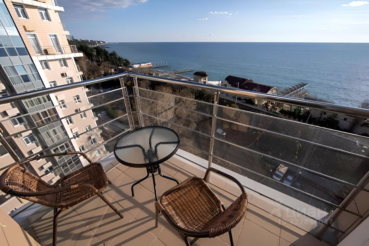 На первой береговой линии Сочи предлагается к продаже двухкомнатная квартира с прямым видом на море. Из балкона и окон открывается захватывающая панорама морских просторов, где можно наблюдать за игрой солнечных бликов на воде и величественными закатами.