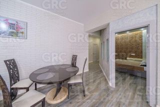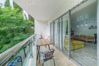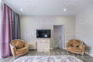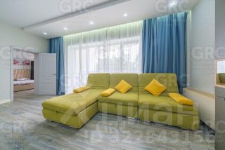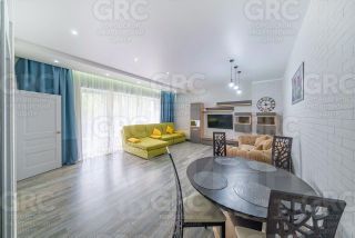 Квартира с ремонтом, дорогой мебелью и техникой, вид на зелень. Площадь: 125 м2, распланирована - 2 спальни, большая гостиная, отдельная кухня (итальянский гарнитур, мрамор, техника Воsсh), гардеробная, две лоджии с видом на зелень. Стоимость ремонта и мебели данной квартиры свыше 10 млн.