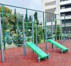 Территория дома охраняемая, видеонаблюдение, консьерж, паркинг, спортивная и детская площадки, а также зона отдыха.