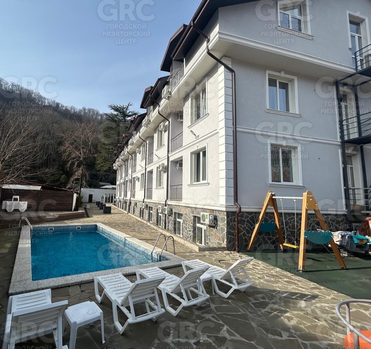 Из окон открывается вид на двор и лес, создавая атмосферу уединения и спокойствия. В шаговой доступности от комплекса находятся магазины, рестораны, детский сад и школа, что делает его отличным вариантом для семей.