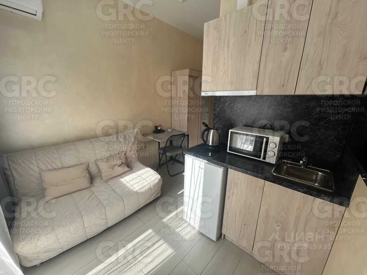 Общая площадь студии составляет 15.6 м², что идеально подходит для комфортного проживания.