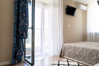 Из просторного балкона открывается живописная панорама на морские просторы и Кавказские горы. Пространство квартиры оборудовано для комфортного проживания: две отдельные спальни с качественными кроватями, современная гостиная с раскладным диваном и функциональная кухня с техникой премиум-класса.